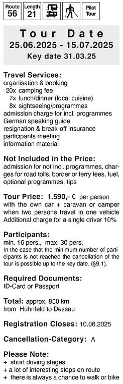 On this tour we travel to some of the highlights of Central Germany. Residence cities and castles of various princes, today's state capitals show the splendour of earlier times. The Thuringian Forest, the Elbe Sandstone Mountains and the renatured Lusatia mining region give us green breaks.