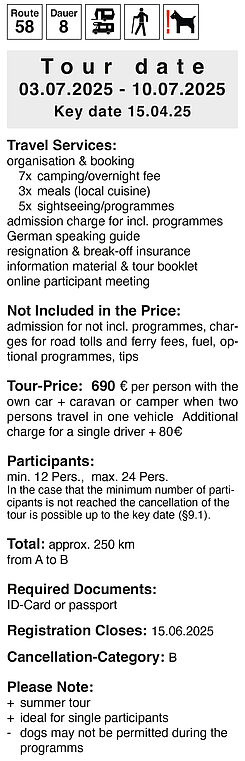 As the name "trip into the blue" suggests, we only tell you where we are going three months before the start of the trip. The journey is expected to have two to three stages with a maximum of 250km. There are several visits, three meals and both culture and maybe a little adventure. We stay in Germany or just move across the border.