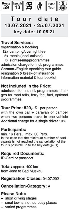 The garden of Prince Pückler-Muskau, who was a real bon viveur, are the final destination. En route we look for other curiosities and hear about interesting historic persons and sights: Colditz Castle, the mustard museum, a planetarium or the visit of the Karl-May-residence. We hear about dragons, dinosaurs and other real and fictional animals.
