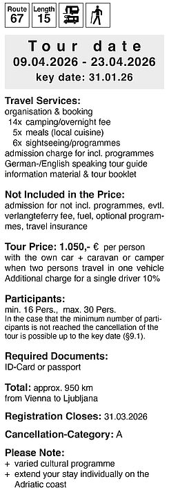 Then it is on to Bratislava, today the capital of Slovakia and on to the majestic Budapest, which was also known as „Paris on the Danube“. Lake Balaton gives us a chance to recover from the stiff programme before we move on to former Yugoslavia, to the Croatian capital of Zagreb. This as well as the Slovenian Ljubljana are two young cities that will enchant you.