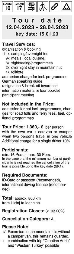 For many years Yugoslavia and its succession states have been favourite destination for campers and caravanners. Albania however, having been isolated so long, opened only recently.