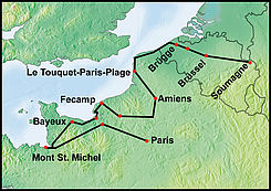 The next days of the programme will introduce you to the history of Normandy and show you the towns of Amiens, Rouen and Bayeux. The nature of Alabaster coast with its unique stone formations and the white beaches will delight you as much as the tides at the Mont-St.Michel.