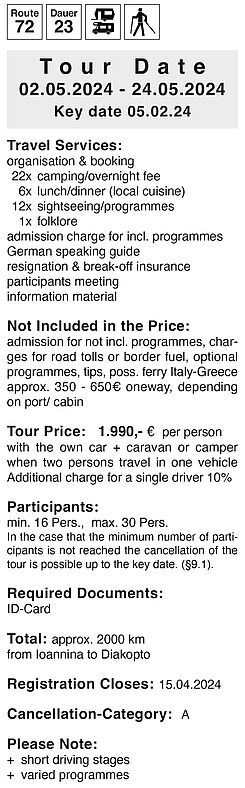 From the beginning, the Homeric epics, the Greek mythologies, the scientist and philosophers will we hear about during this trip. The stores about the Macedonian kings Philipp II and Alexander the Great will keep us in suspense same as the wars amongst the city states, the fight against the Persian Empire and other conquests. All these cultures have left evidence for us to see.