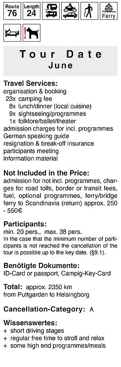On this tour you will hear about Vikings and knights as well as kings and their royal children. Science, Engineering and Design have created many interesting features throughout the country. Flora and fauna, and the blend between the country and the seaside will impress you. Elves and trolls will watch over you. Friendly people all around - everybody is open-minded and hospitable.