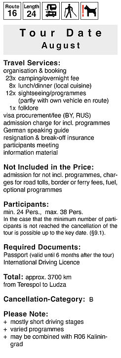 The return tour travels through Belarus, and the tour ends with entering Poland, which is easily explored on your own.